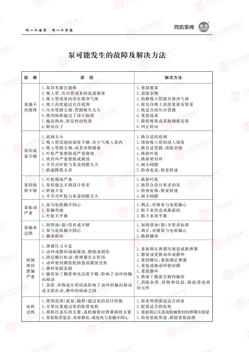 泵可能发生的故障及解决方法