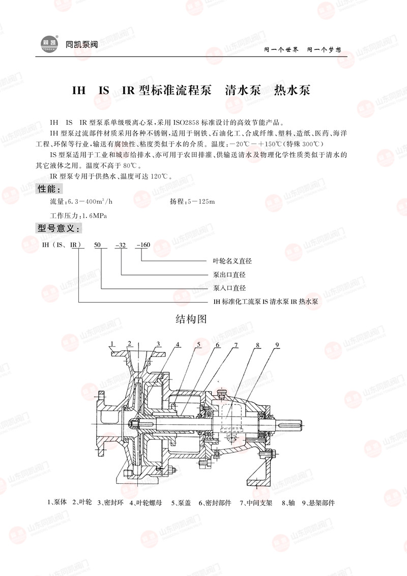 IH IS IR型标准流程泵 清水泵 热水泵