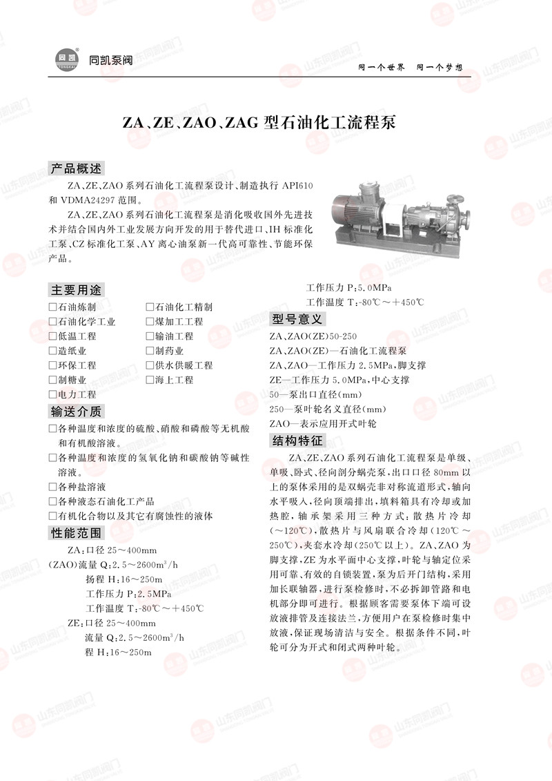 ZA、ZE、ZAO、ZAG型石油化工流程泵